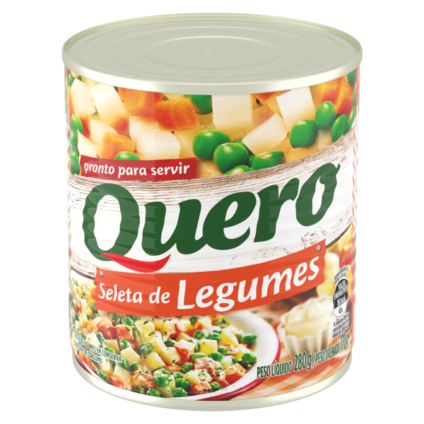 A Seleta de Legumes QUERO 170g é uma combinação perfeita dos legumes mais amados por todos, apresentada em um formato conveniente e pronto para usar. Cada lata é repleta de milho, ervilha e cenoura cuidadosamente selecionados e cozidos na medida certa para manter a textura e o sabor originais. Uma solução prática e deliciosa para quem busca agilidade na cozinha sem abrir mão de uma alimentação balanceada.