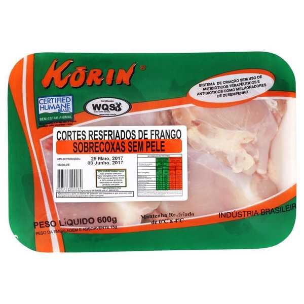 Sobrecoxa de Frango Sem Pele Resfriado KORIN bandeja 600g